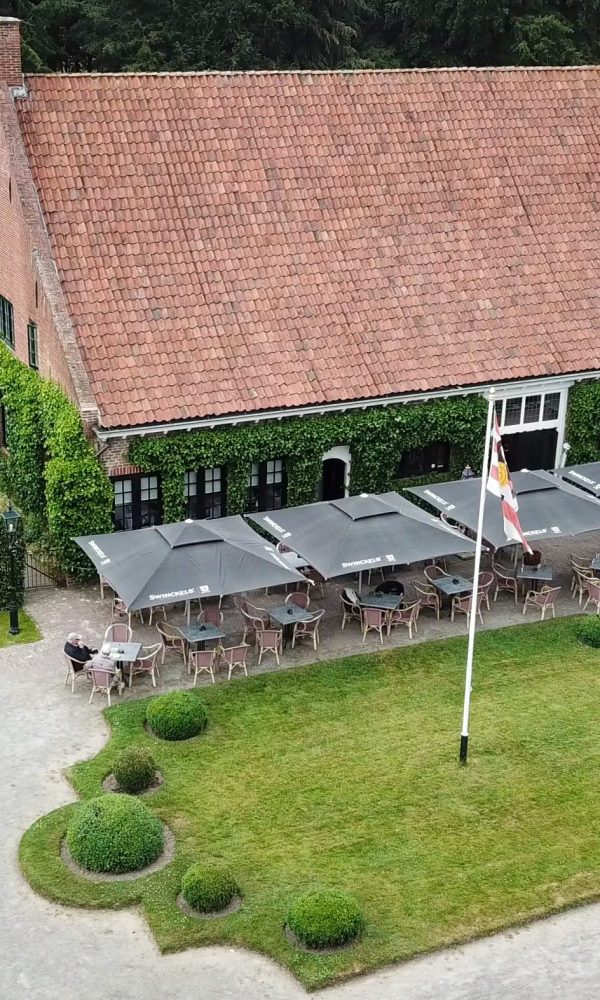 Zomers kunt u, indien het weer het toelaat, dineren op het terras met uitzicht op de Menkemaborg.